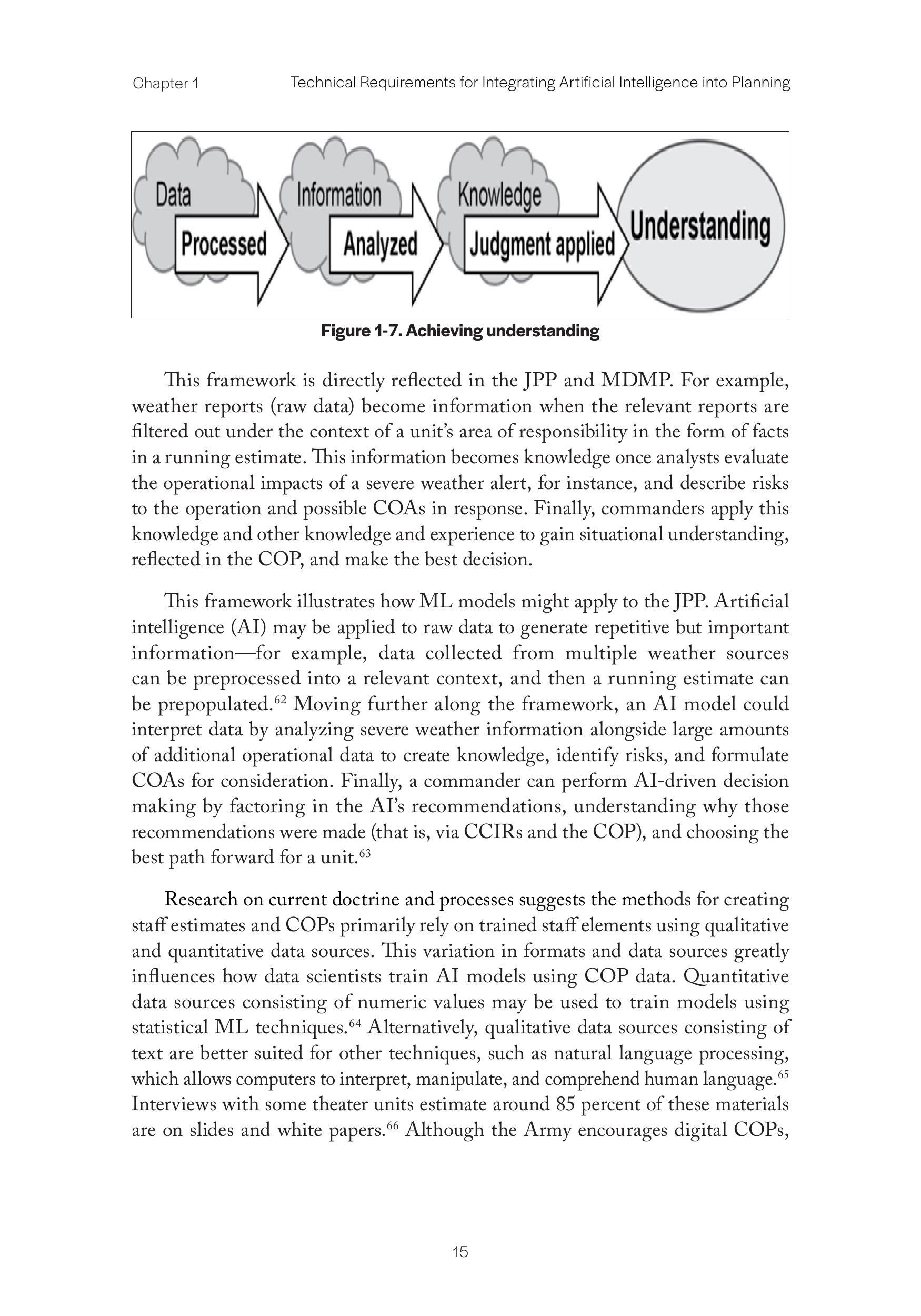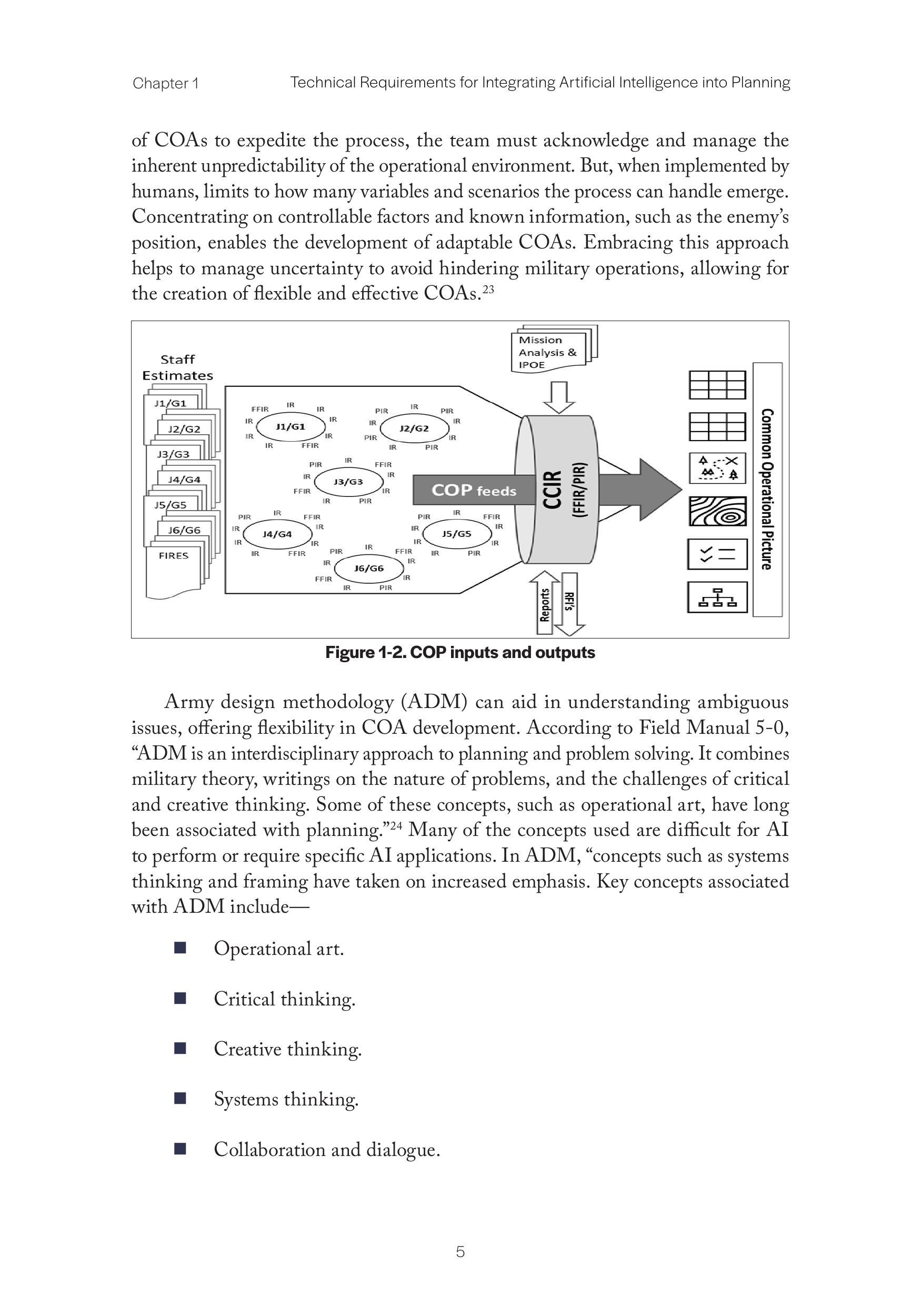 引言中讨论的负责任AI战略的伦理特征——负责任(responsible)、公平(equitable)、可追溯(traceable)、可靠(reliable)与可治理(governable)——为管理未来系统设计提供了坚实基础。负责任的AI使用意味着对AI的行为承担责任。这种责任有两层含义。首先,负责任的使用意味着用户会按照系统设计的功能加以利用。对于进行JPP的参谋而言,这种功能性意味着理解任何纳入规划流程的系统的能力与局限性,而这种理解主要通过训练和实验新技术获得必要熟悉度来实现。其次,负责任的使用意味着人类操作员始终对行为负责,无论其如何利用技术。\({ }^{1}\) 尽管AI可能接管历史上由人类执行的行为,但该技术本身并不具备能动性。作为规划工具,AI提供支持,指挥官作出决策并对部队计划负责。
