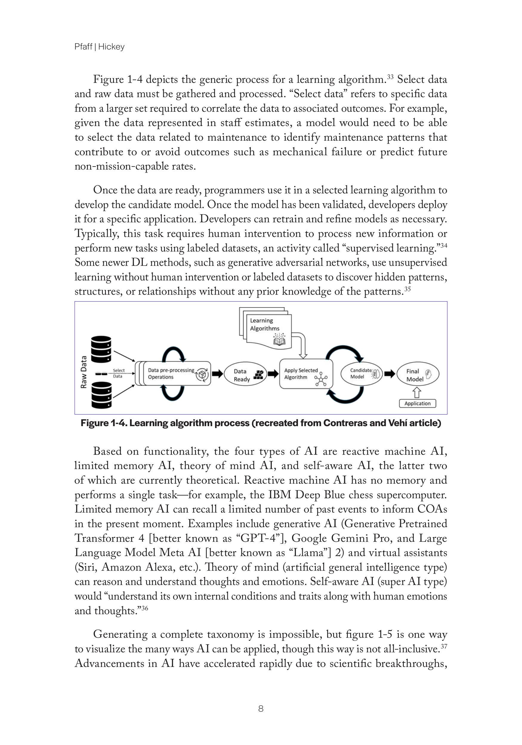 机器学习(Machine Learning, ML):人工智能的一个子领域,专注于开发能基于数据学习并进行预测或决策的算法与统计模型。ML系统通过分析数据中的模式不断提升特定任务的表现。鉴于AI与ML高度重叠,本研究以“AI/ML”统称,表示二者在军事应用中的综合影响与发展。
