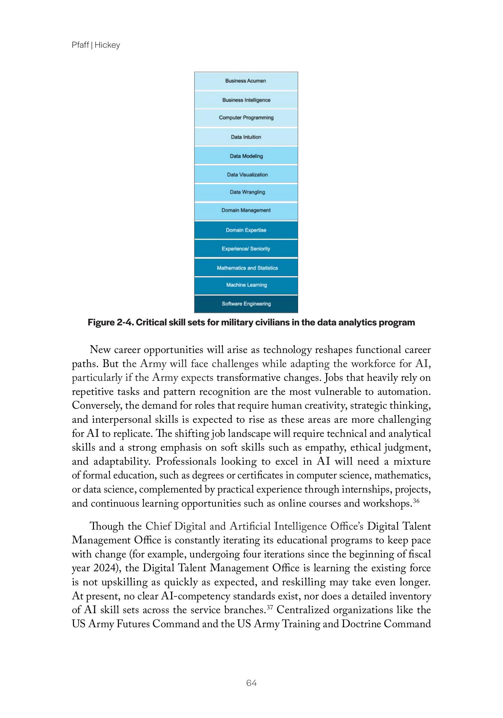 - 为主要职能将被AI/ML取代的军人建立培训管道和军种专业再分类路径。