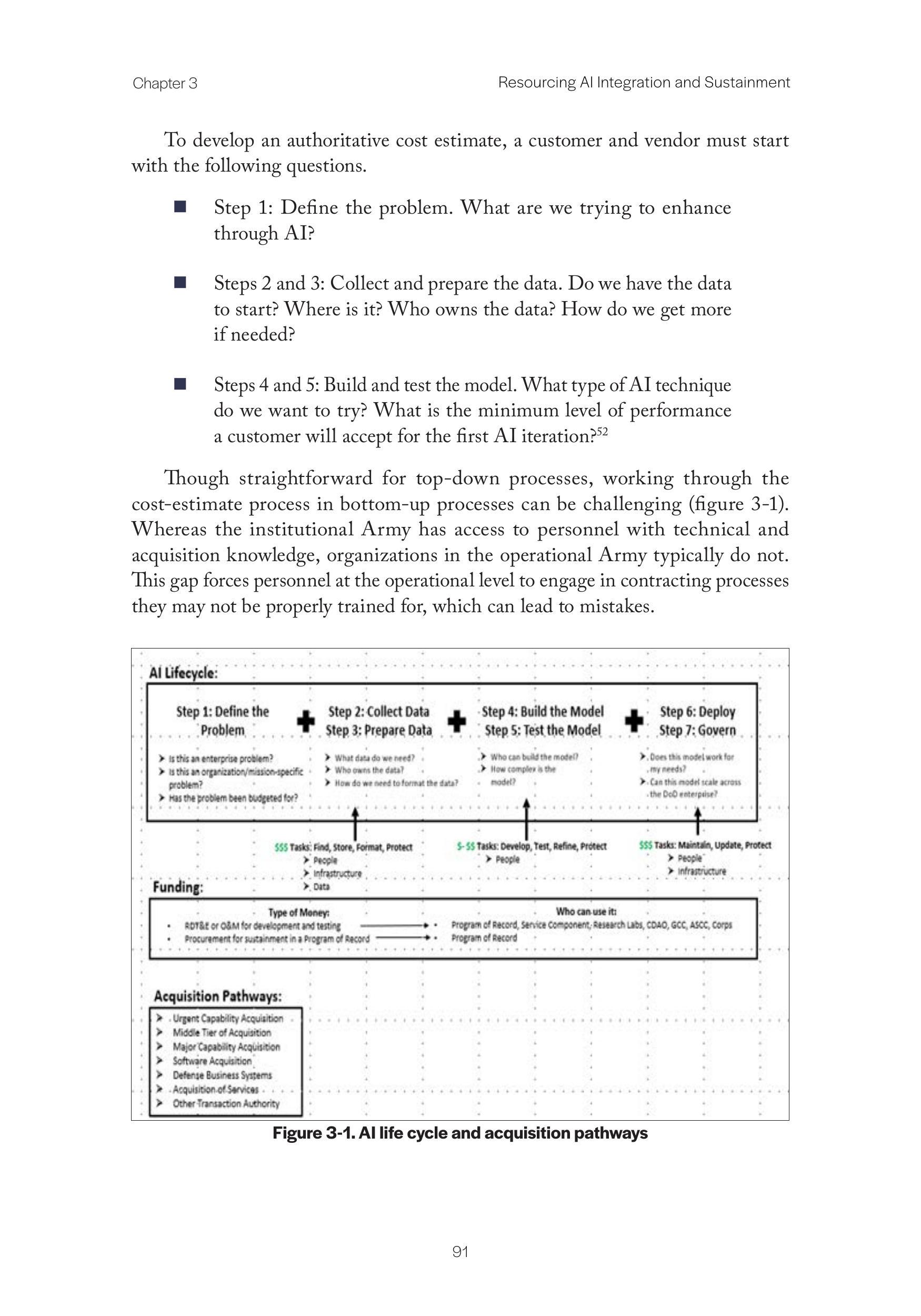 将AI/ML作为规划工具的整合取决于相关倡议是否得到资源支持。虽然其他视角关注潜在益处,但该视角着眼于相关成本。然而,本节所提出的建议并不聚焦于国防部是否应为某个具体项目提供资源、提供多少或优先级如何,而是旨在确保对AI整合所投入的资源得到高效利用: