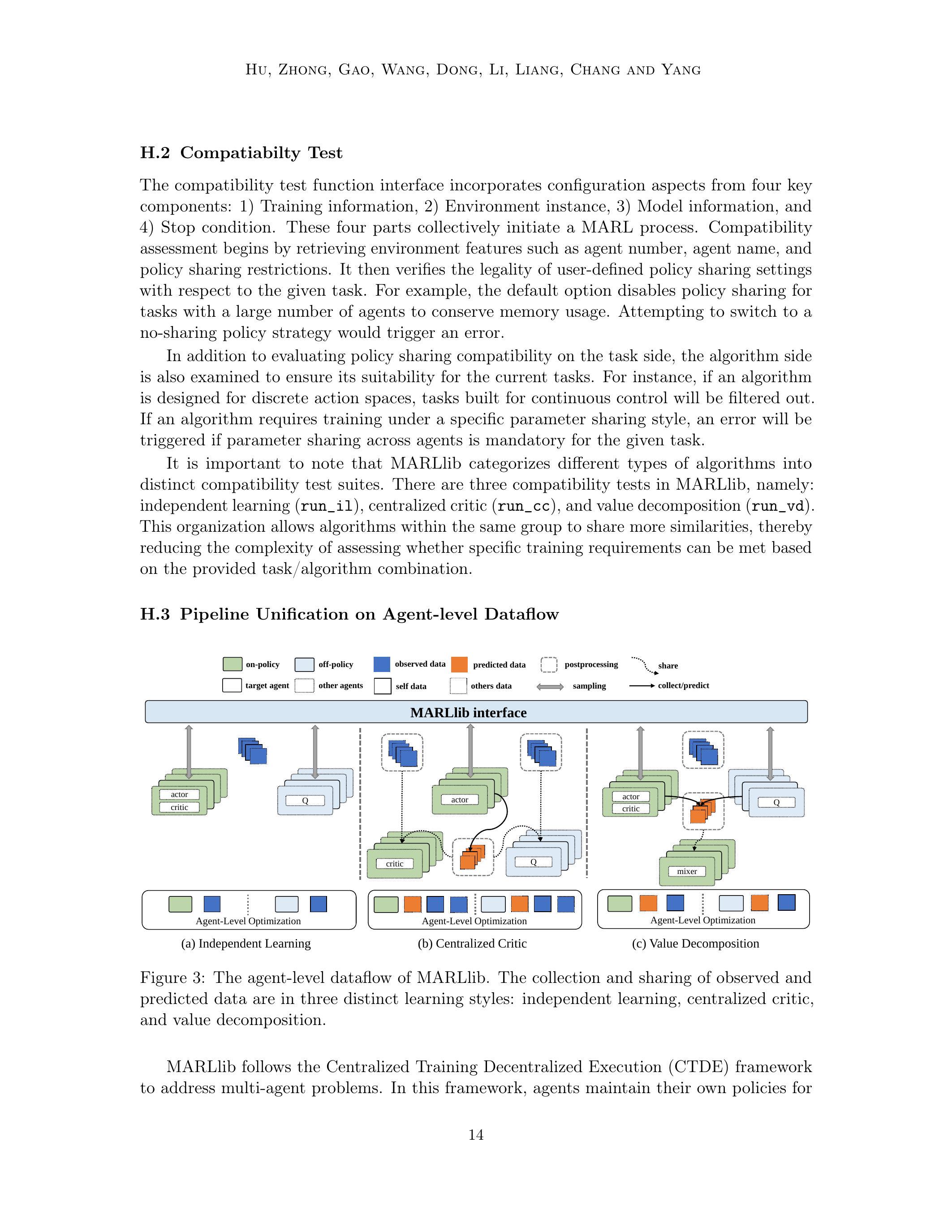 还有一些情况偏离了“一个学习流程适用于所有任务”的目标。换句话说,尽管智能体级数据流为MARLlib中的算法统一提供了工具,但缺乏如何高效使用该工具的指导。为此,我们引入了兼容性测试与自动适配机制,作为MARLlib的重要组成部分,旨在实现算法的最终统一。