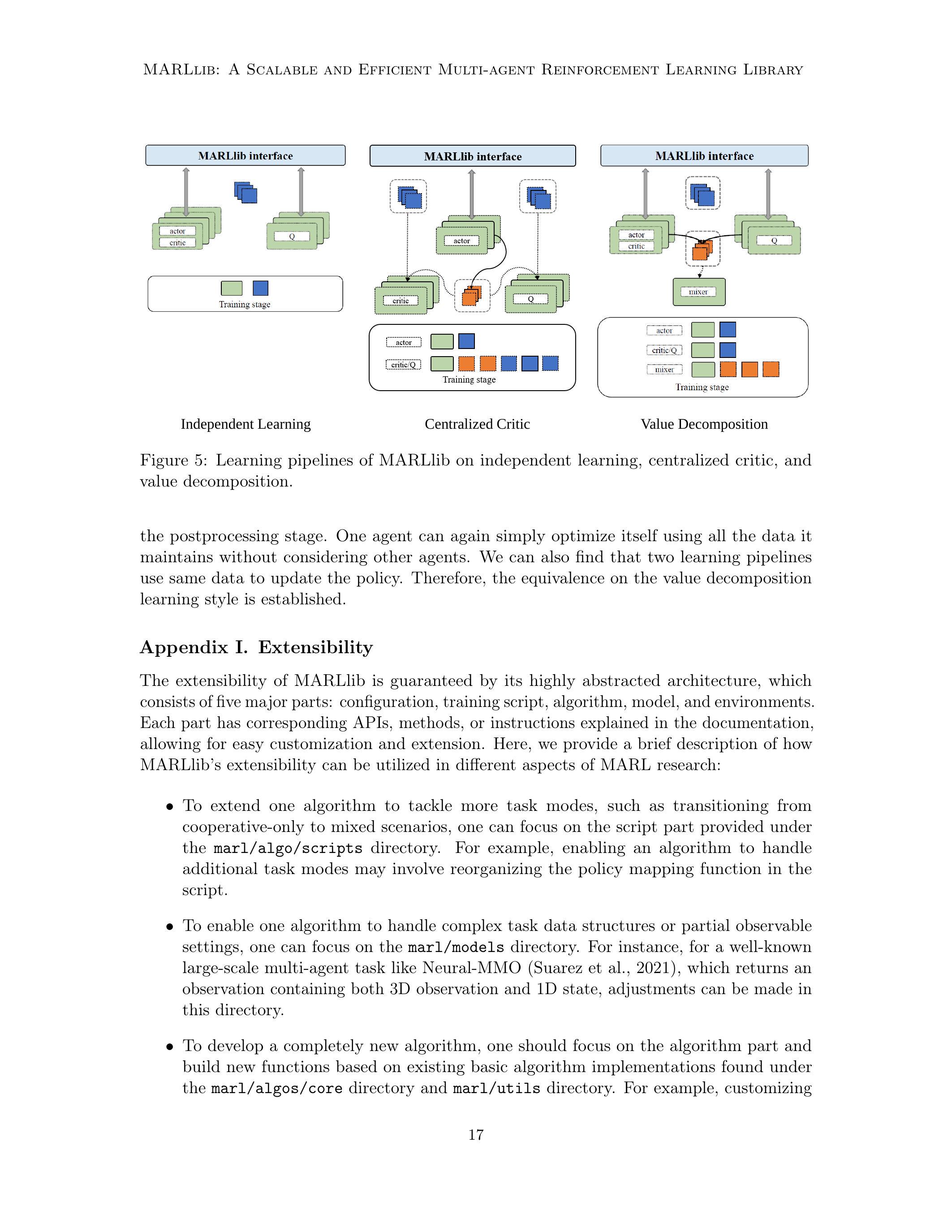 总之,MARLlib的可扩展性覆盖了开展多样化MARL实验的各个方面,使其成为MARL研究中的一款强大工具。更多示例可在MARLlib仓库的examples目录中找到。