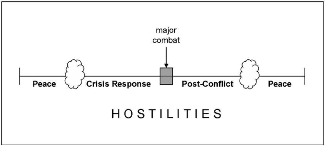 | 和平、危机、战争 | 行动连续体(Continuum of Operations) |