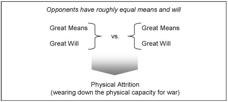 \({ }^{14}\) 此处并非否认重大消耗战的参与者未动用其掌握的一切手段——外交、经济、信息与军事手段——以击败对手。而是强调,正如第一次世界大战的漫长历程所凸显的,只要对手的军事意志与手段依然存在,这些其他手段便不足以击败敌人。