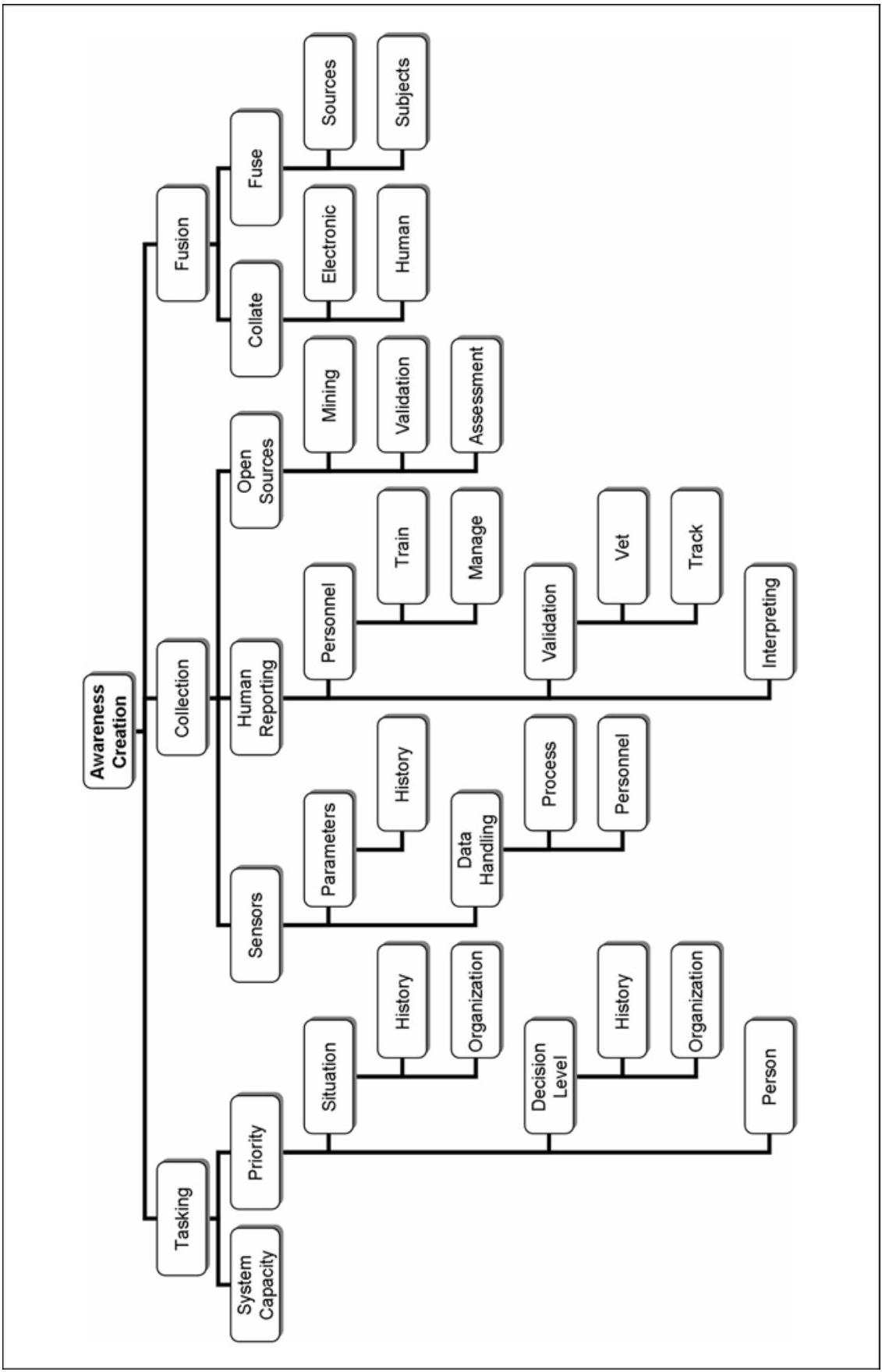 总体而言,态势感知生成流程可分解为三个子流程(subprocesses):任务规划(tasking)、情报收集(collection)与信息融合(fusion)。\({ }^{131}\)