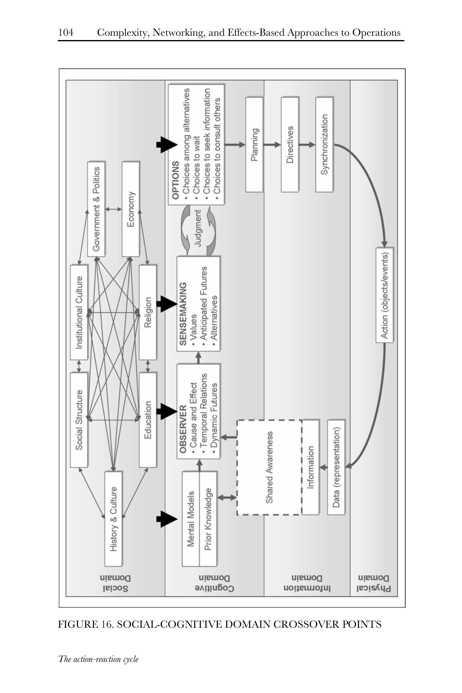 社会域向认知域的此种交叉(crossover)在图16所示行动-反应循环的四个不同区域中显而易见(由粗箭头标示)。