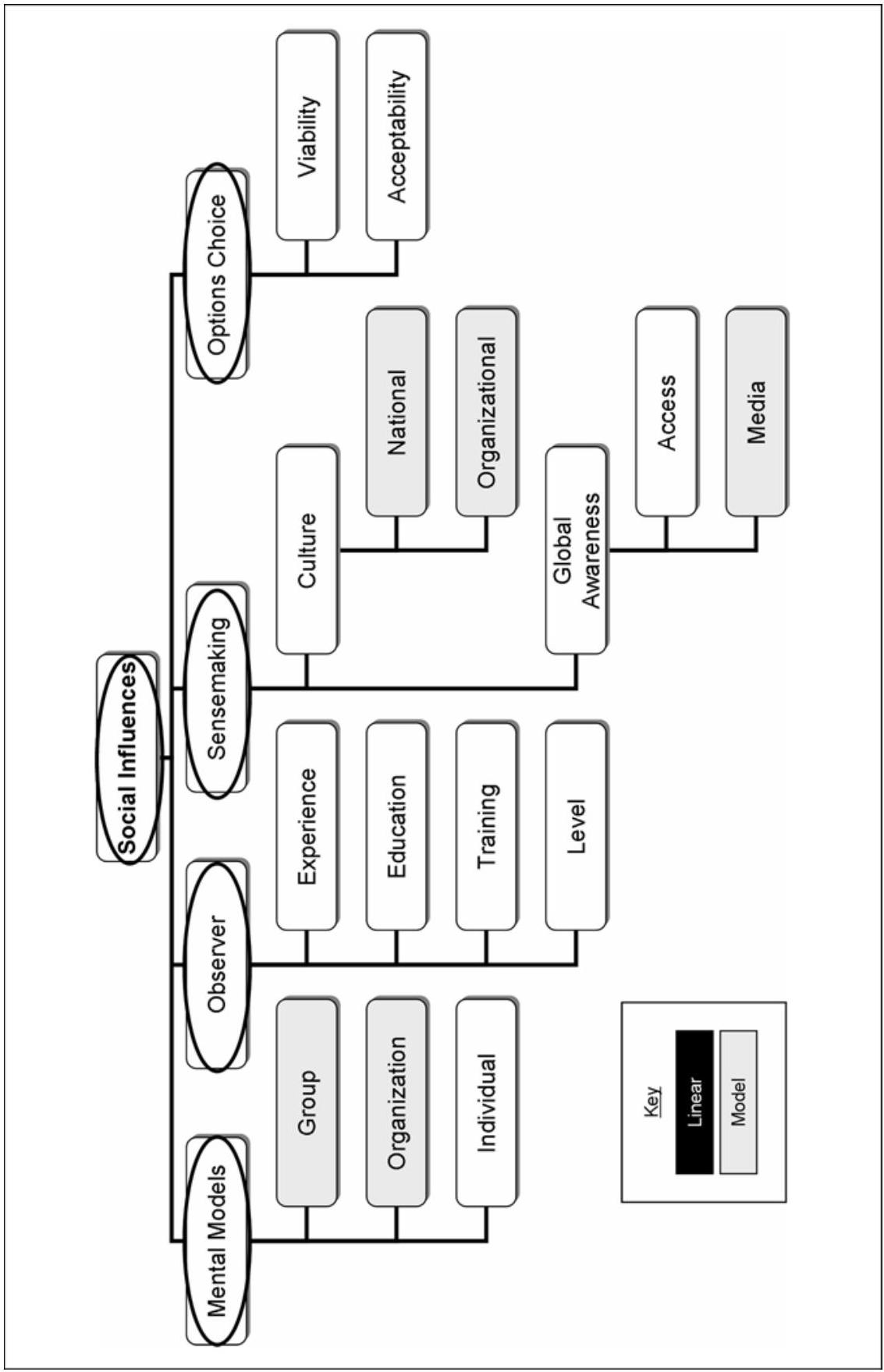 由于生成社会影响的社会过程(social processes)涉及众多相互依存的变量,其完整范围永难穷尽,故其对联合特遣部队评估与规划流程的影响必然复杂。为应对该复杂性以限定决策范围——无论是在确保规划与执行能够支撑政治共识,抑或在评估观察者可能反应方面——将需依赖两类工具:一类用于收集信息与知识以更新知识库;另一类用于对相关社会行为进行建模——可能包括群体与组织心智模型、理解框架(frameworks for understanding)、意义建构中的影响因素、世界观(weltanschauung)以及对特定行动方案可行性与可接受性的认知。然而,此类建模工具常面临"垃圾进、垃圾出"(garbage in, garbage out)问题:尤其在尝试建模非西方行为时,它们高度依赖主观/定性输入(subjective/qualitative inputs),因而取决于获取并输入数据与信息者的专业知识水平。这表明需持续引入主题专家(subject matter expert)参与:或引导模型使用,或在时间紧迫时直接向联合特遣部队指挥官提供输入或解答其疑问。\({ }^{212}\)