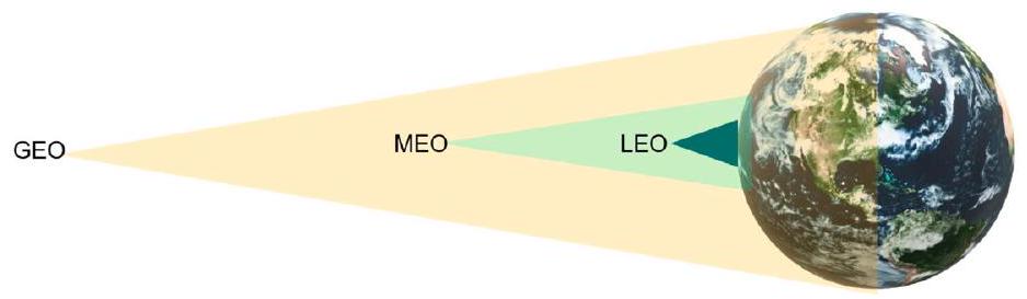 | GEO | 22000 | - 地面设备固定不动 - 单颗卫星可覆盖地球三分之一 |
