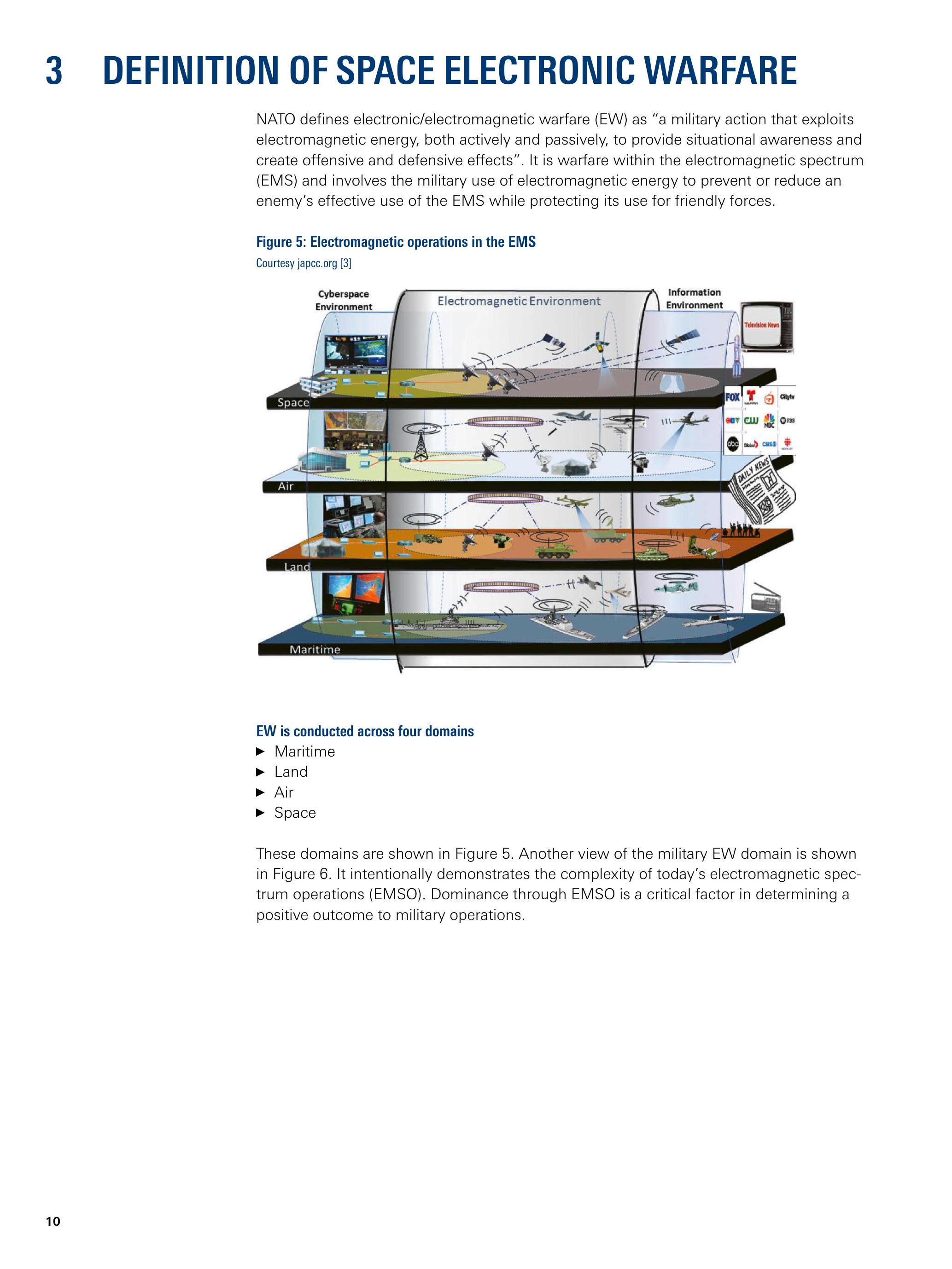 电子战跨越四个作战领域: