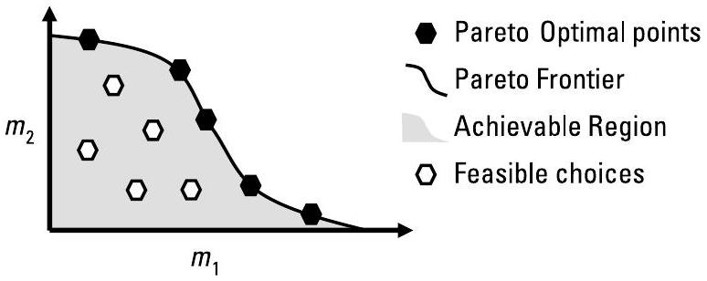 - 求解约束模型(constraint model),其中某些度量必须满足最低标准,而其余度量则被优化(见图 5.5);