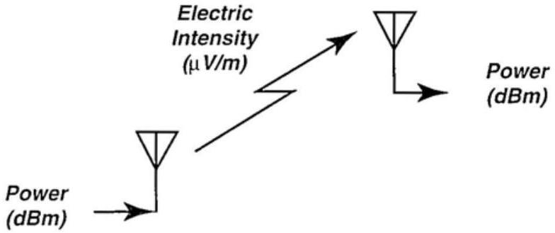 图 2.4 严格来说,只有在导线或电路中才能用 dBm 表示信号强度。在“以太波”中,正确的做法是用 \(\mu \mathrm{V}/\mathrm{m}\) 表示电场强度。