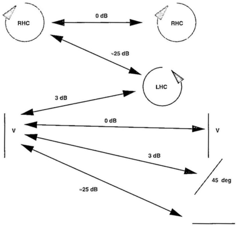 图 3.2 交叉极化损耗范围从 0 dB 到约 25 dB。注意 \(3-\mathrm{dB}\) 损耗适用于任何线极化与圆极化的组合。