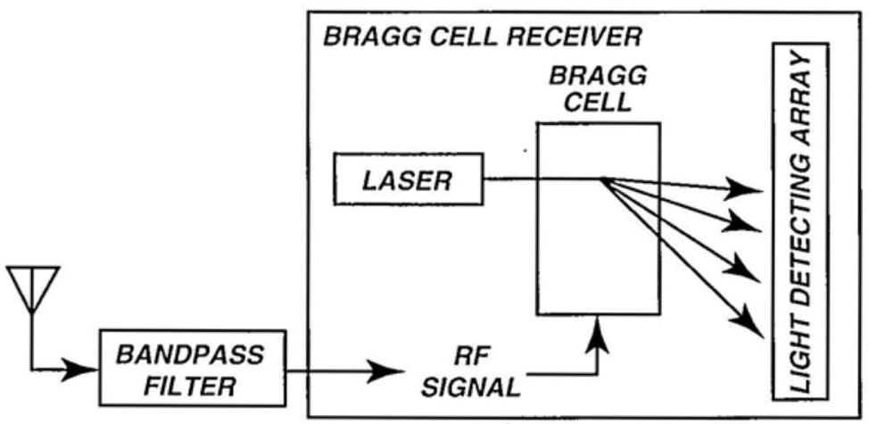 图 4.6 布拉格池接收机提供瞬时、全频带的频率测量,并能处理多个同时信号。