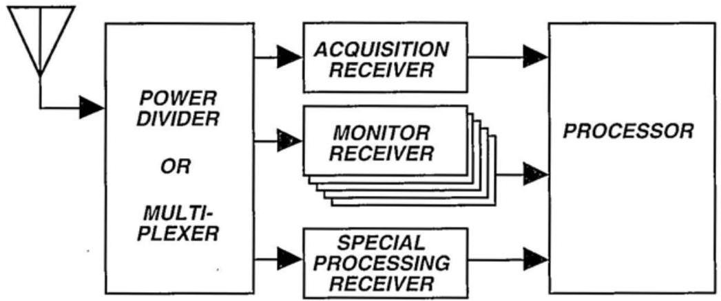 另一种常见做法是使用一台特殊处理接收机——通常比其他接收机更复杂——为几个监视接收机正在处理的信号提供额外信息。