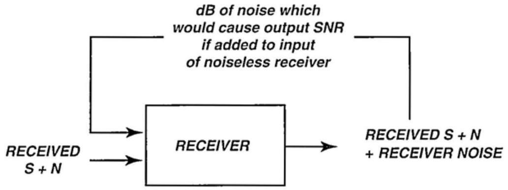 接收机完成其任务所需的信噪比(SNR)高度依赖于信号所携带的信息类型、承载信息的调制方式、对接收机输出信号进行的处理类型,以及信号信息的最终用途。需要特别注意的是,在确定接收机灵敏度时所定义的信噪比是前检波信噪比,称为射频信噪比(RF SNR),有时也称为载波噪声比(CNR)。对于某些调制方式,接收机输出信号的信噪比可以显著大于 RF SNR。
