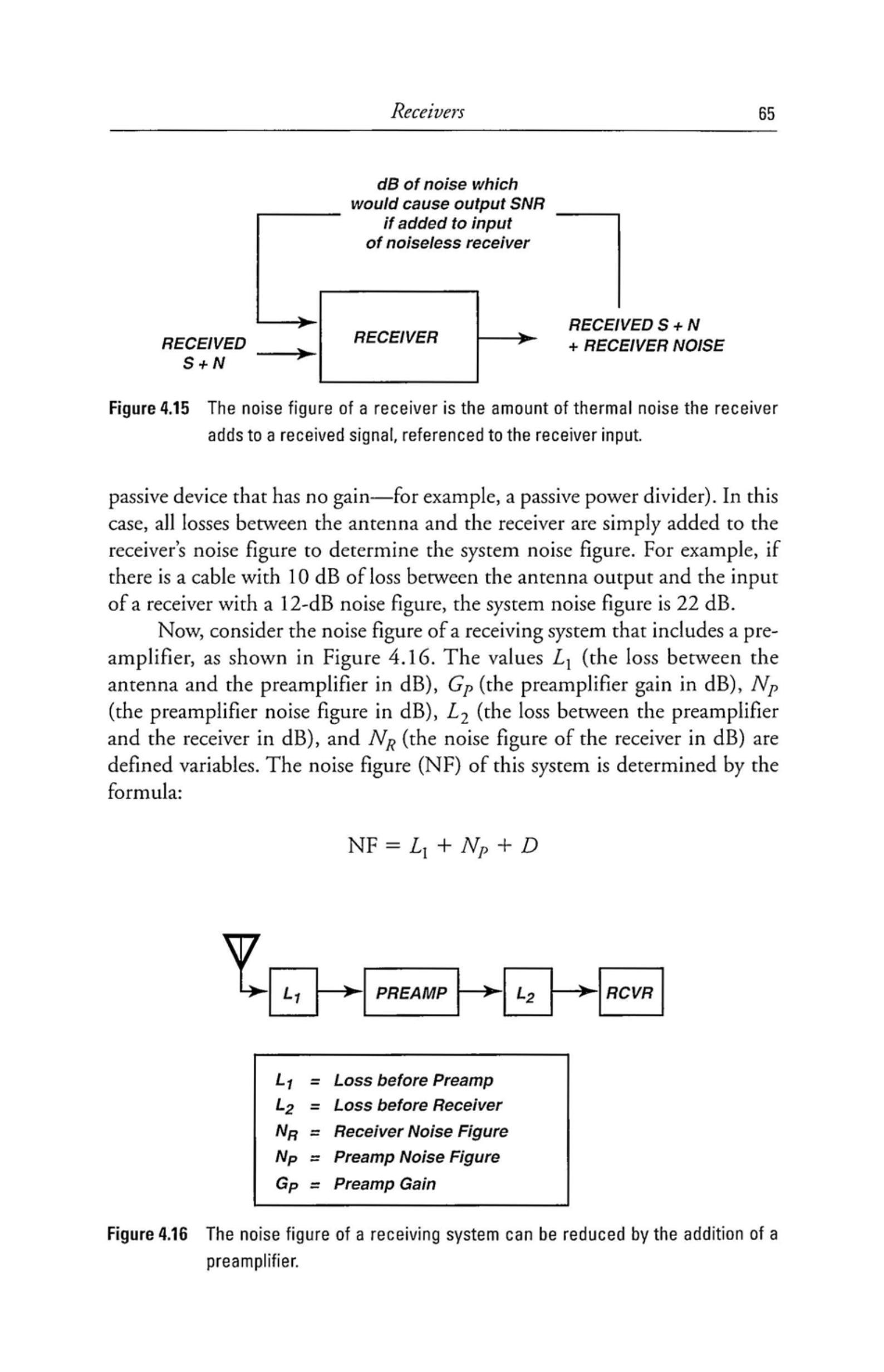 图 4.15 接收机的噪声系数是接收机在接收信号上增加的热噪声量,参考到接收机输入端。