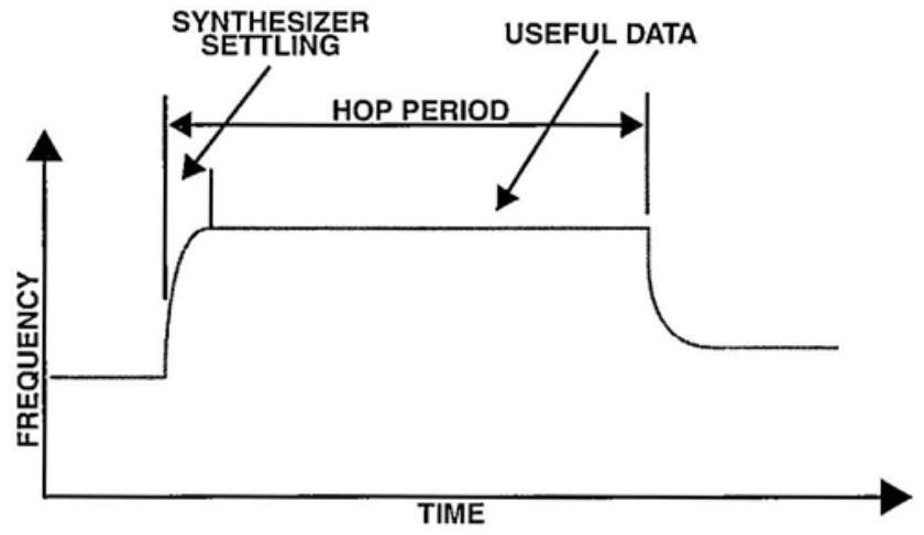 图7.4 跳频合成器在跳频发射机传输数据前需要一定的锁定时间。