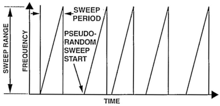 图7.6 扫频信号在大频率范围内扫频,其起始时间伪随机选择。这使敌方接收机无法与扫频同步。