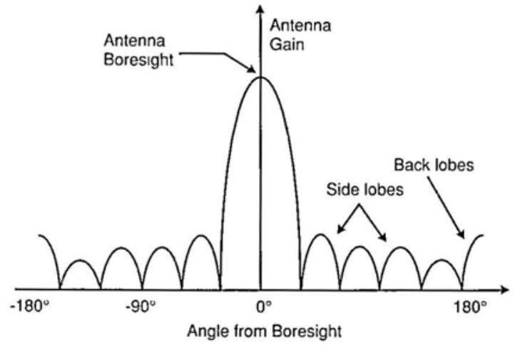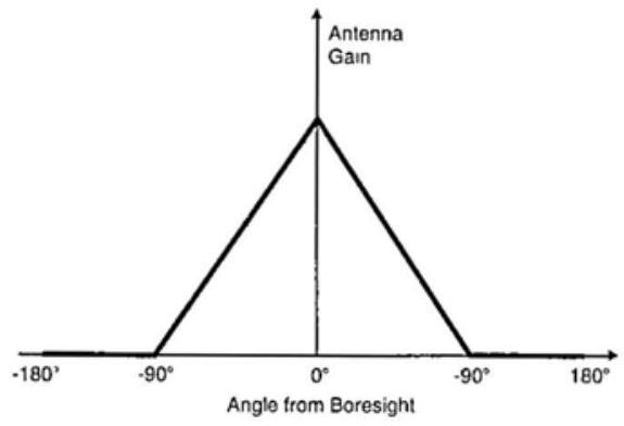 图 8.10 窄波束天线在主轴附近的增益远高于其他角度。其他角度的信号显著衰减。