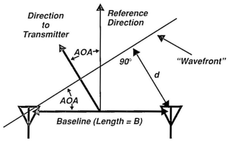 干涉测量是在从略高于直流到远超光频范围内实现高精度辐射源定位的最常用技术。干涉仪系统通常通过在两个或多个DF站测量入射角(AOA)来确定辐射源位置。采用这种方法的系统通常能实现约\(1^{\circ}\) RMS角度测量精度。干涉测向在各种EW系统中都有应用,但最常见于雷达和通信ES系统。