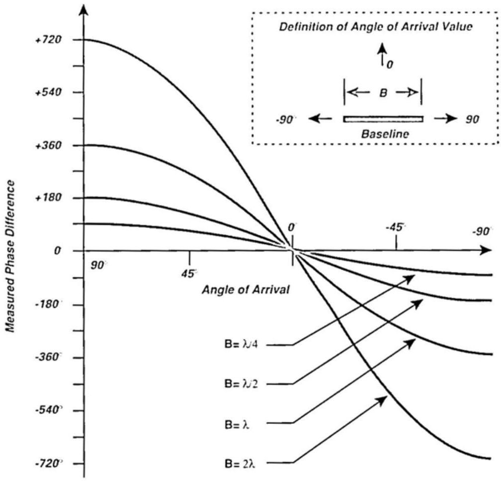 其中,\(\phi\) = 信号在两天线接收时的相对相位(度)。