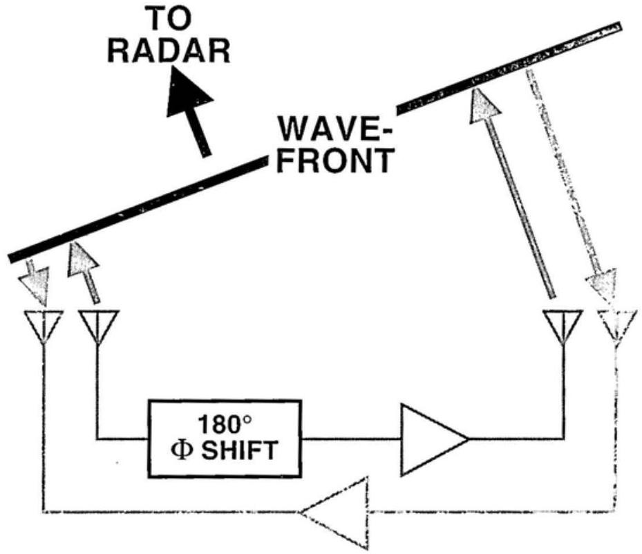 图 9.47 从雷达到干扰环路再返回雷达的电气路径长度在两个环路中保持一致,与雷达方向无关。