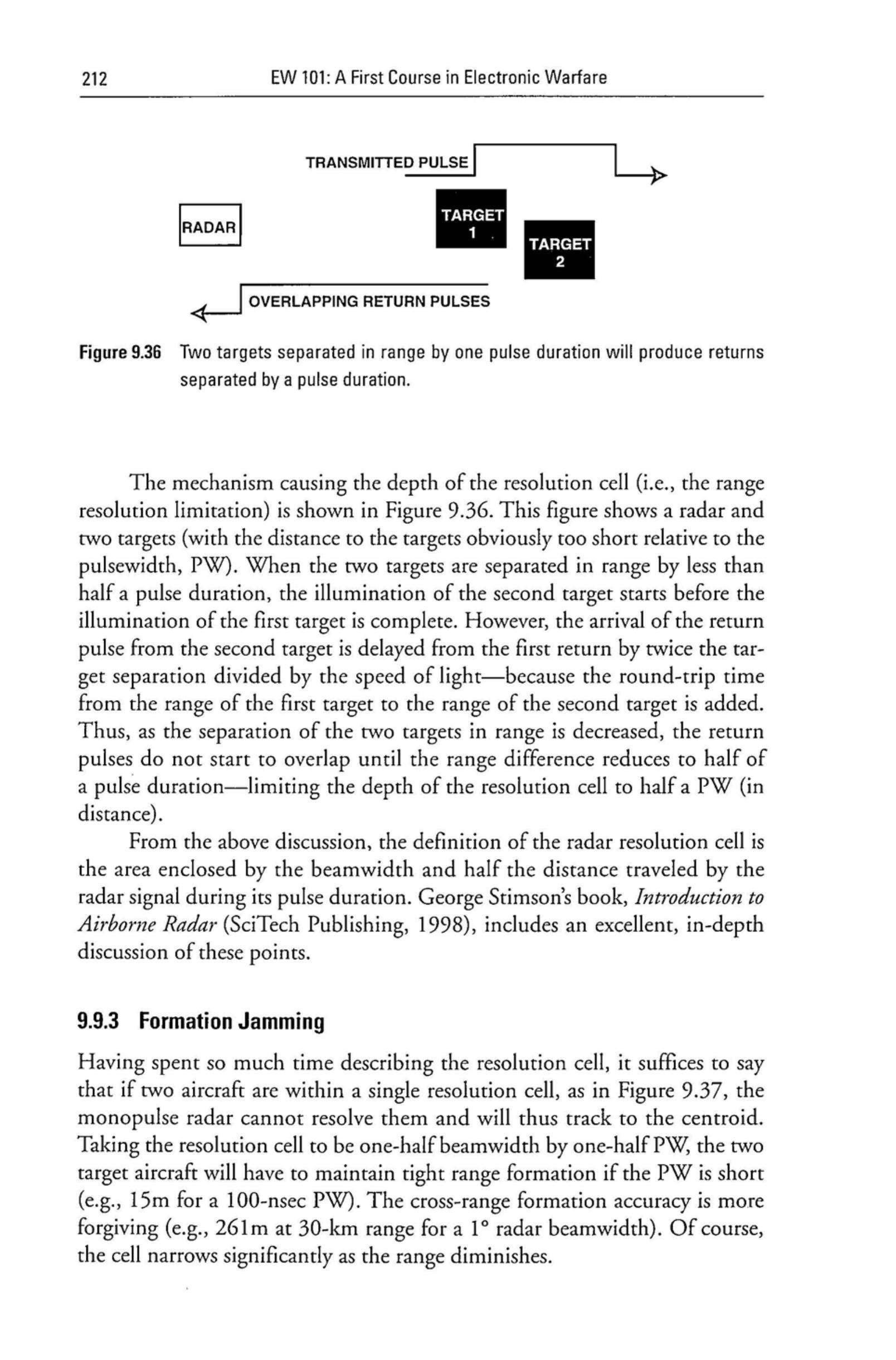 图 9.37 当两目标处于同一雷达分辨单元内时,即实现了编队干扰。