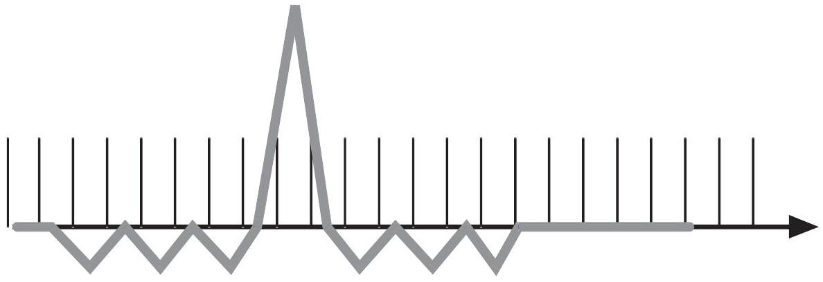 图 3.35:当合成孔径较长时,某些脉冲的目标回波中可能会出现显著的相位误差。