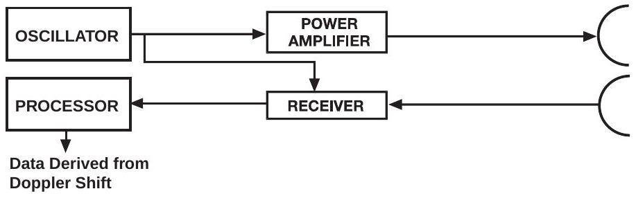 图3.3是连续波(CW)雷达的框图。它与脉冲雷达的不同在于其信号始终存在。这意味着它必须有两个天线,因为在发射的同时需要接收极其微弱的回波。两个天线必须具有足够的隔离度,以防止发射信号使接收机饱和。接收机将接收信号的频率与发射频率进行比较,以确定由目标相对速度引起的多普勒频移。发射机还可以加调制,以允许测量距离。处理器执行目标跟踪和天线控制功能,并像脉冲雷达一样与控制和显示接口。