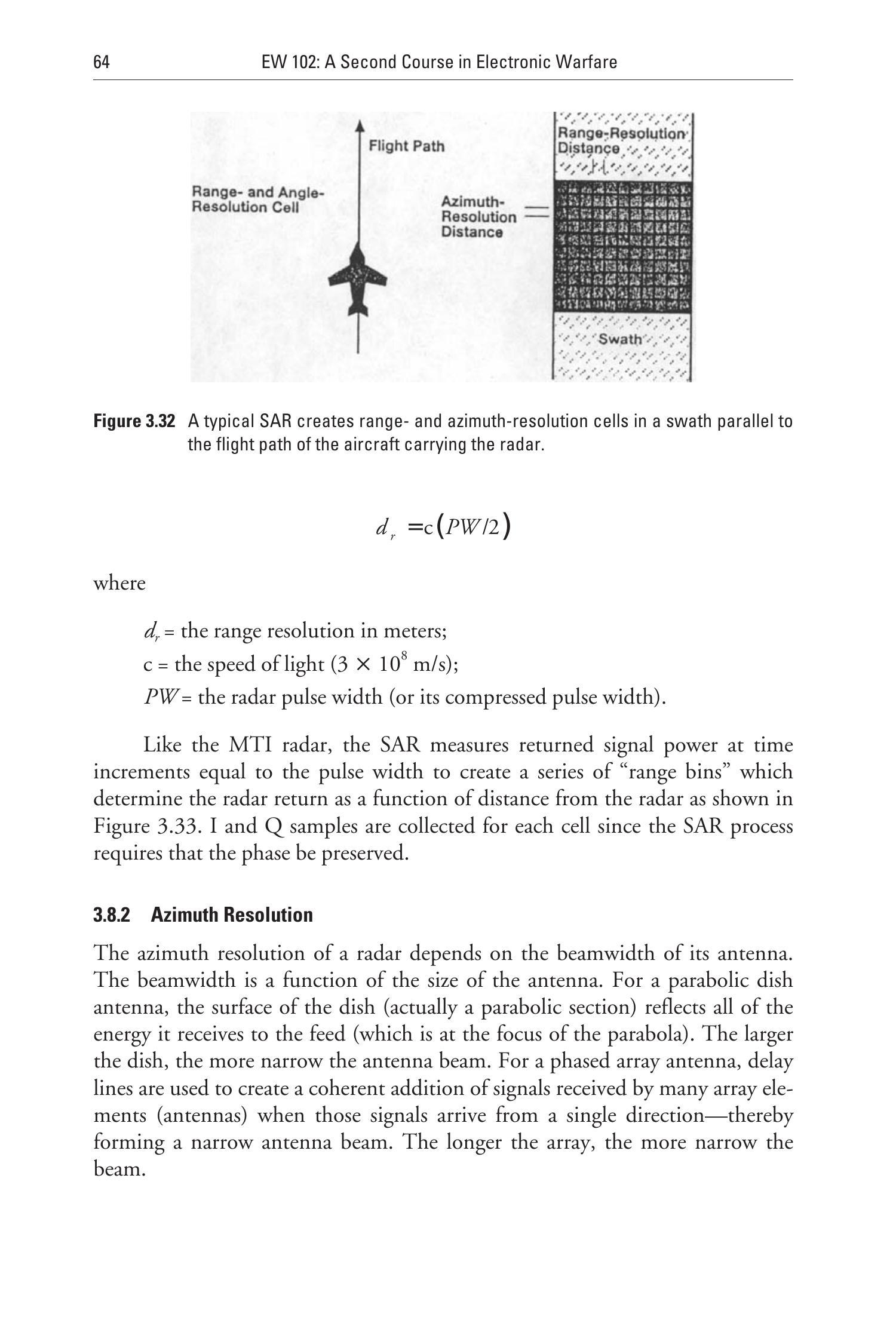 图 3.32:典型 SAR 沿飞行航迹生成距离和方位的分辨单元。