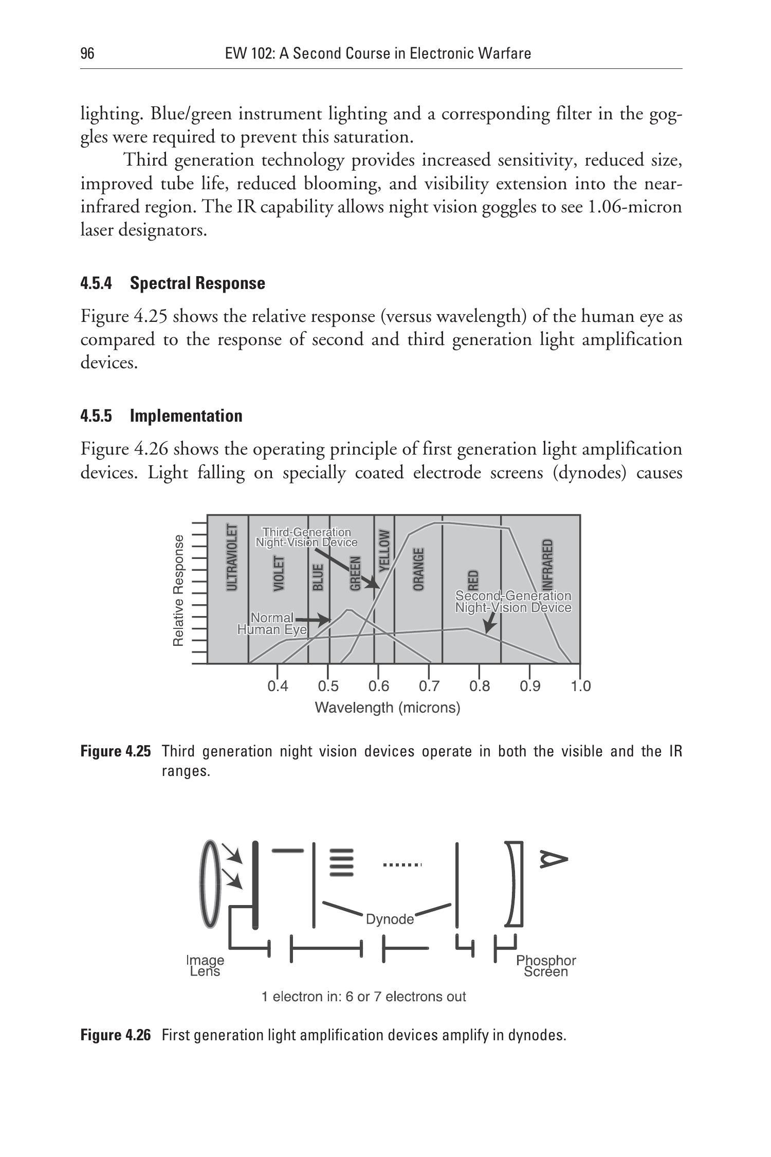 图4.25 第三代夜视器件可在可见光和红外波段工作。