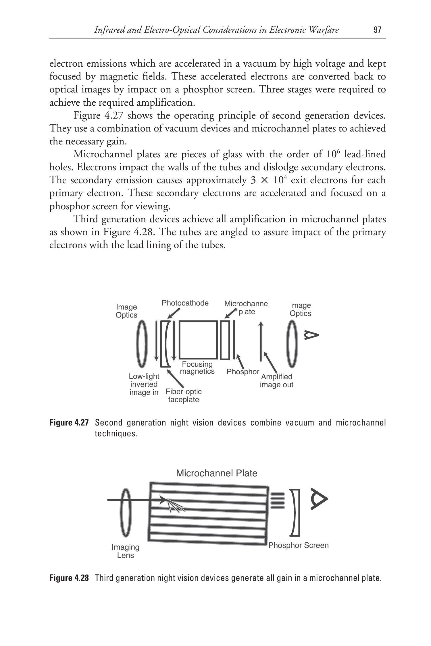 图4.28 第三代夜视器件的所有增益均在微通道板中产生。