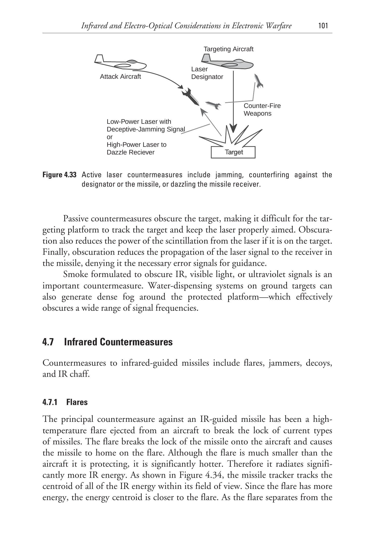 图4.33 主动激光对抗措施包括干扰、对指示器或导弹的反击,或致盲导弹接收器。