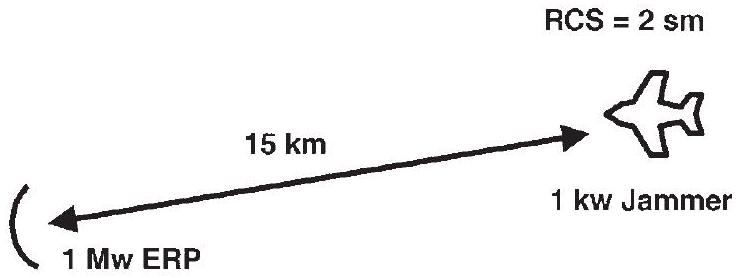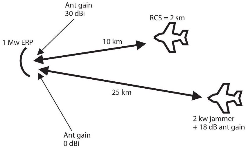对于干扰机,\(\mathrm{FA}=(200 \times 2 \times 150) / 24,000=2.5 \mathrm{~km}\)