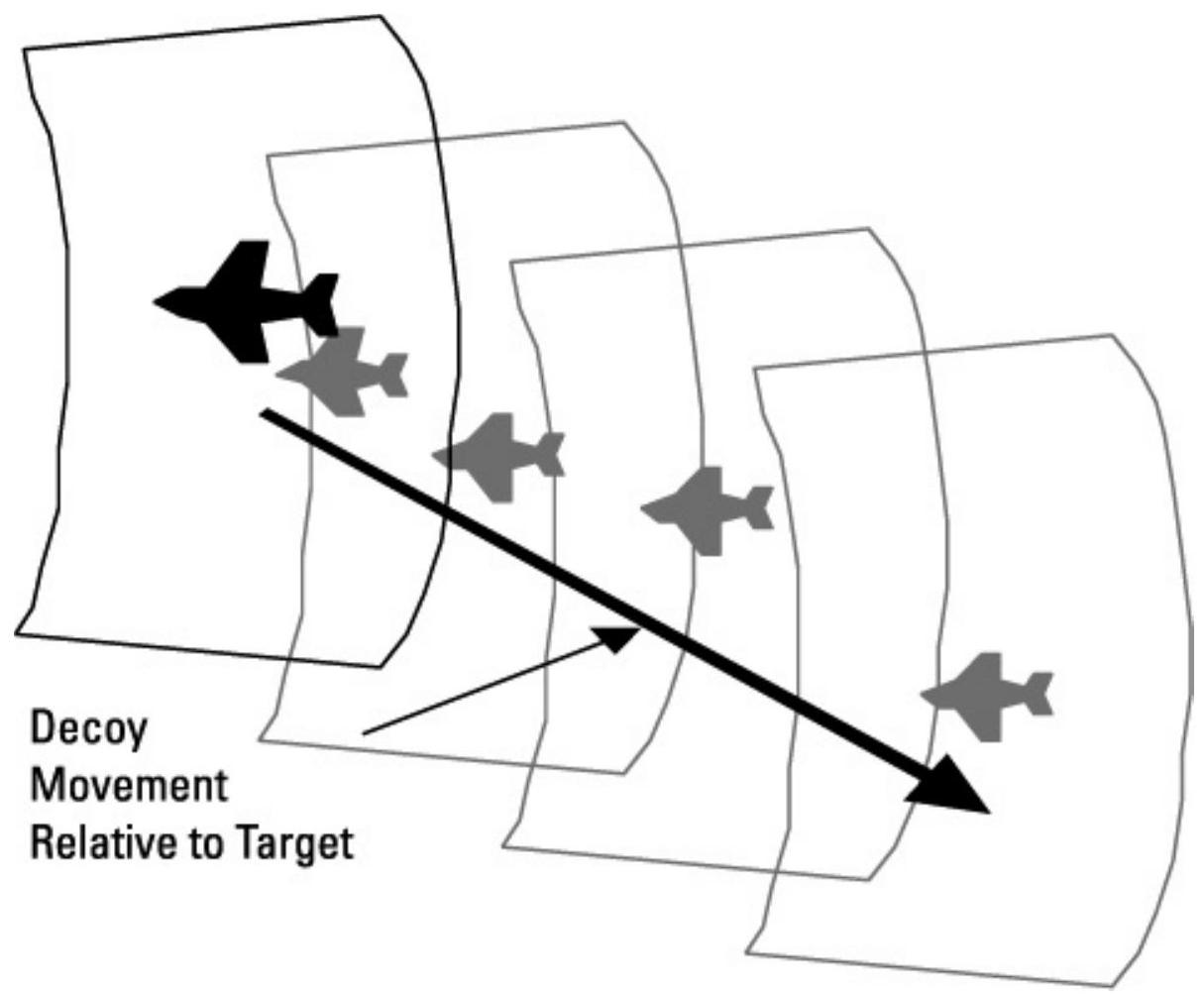 图 10.12 干扰诱饵创造多个假目标,以超载目标传感器或其控制武器的能力。