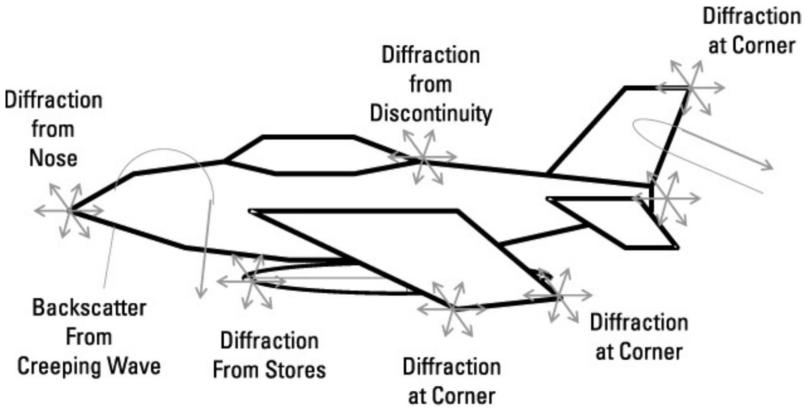 图 10.10 飞机的雷达截面受多种因素影响。它们共同产生具有复杂幅度和相位分量的 RCS。