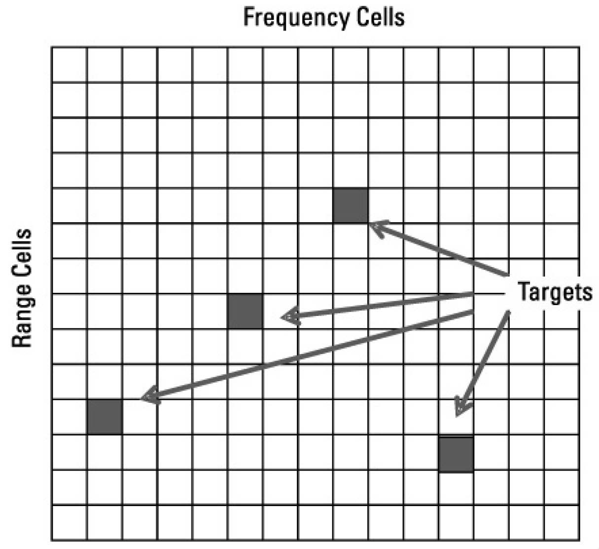 图 10.8 脉冲多普勒雷达处理包括距离-频率单元矩阵,可确定每个接收回波信号的频率。