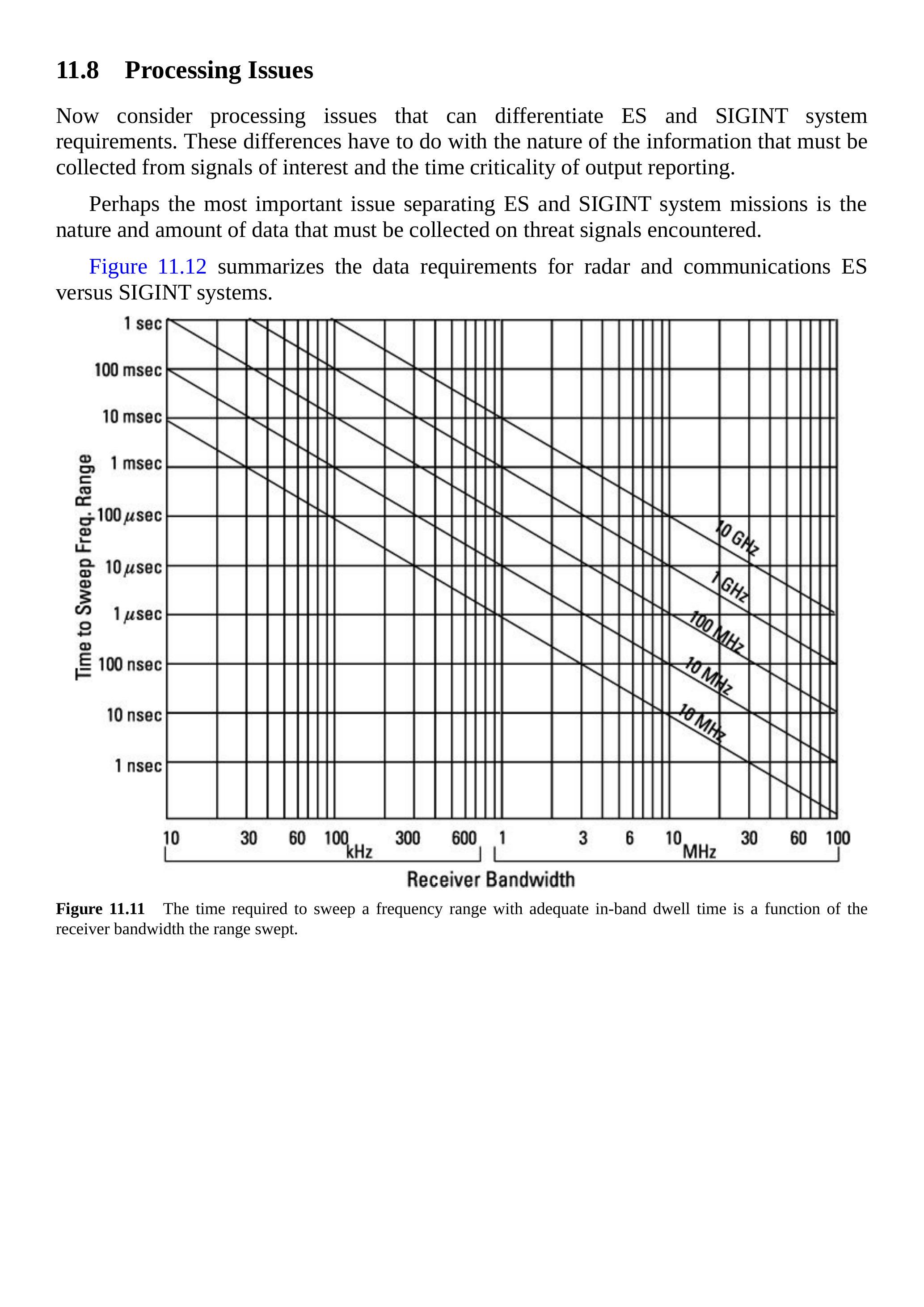 图 11.12 总结了雷达和通信 ES 与 SIGINT 系统的数据需求。