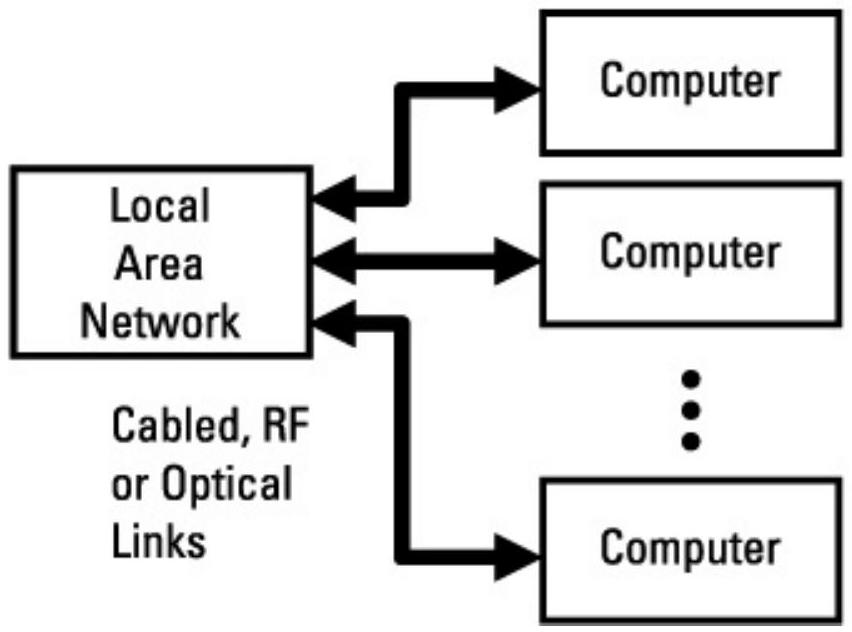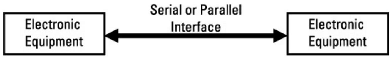 机器对机器或计算机对计算机的连通性如图2.5所示。由于计算机和其他受控机器不受人类连通速率的限制,这种通信可以具有更宽的带宽。机器可以直接有线互联(并行或串行),也可以通过局域网(LAN)互联。局域网可通过数字电缆、射频链路或光学链路连接机器。速率范围从几赫兹到千兆赫兹不等。