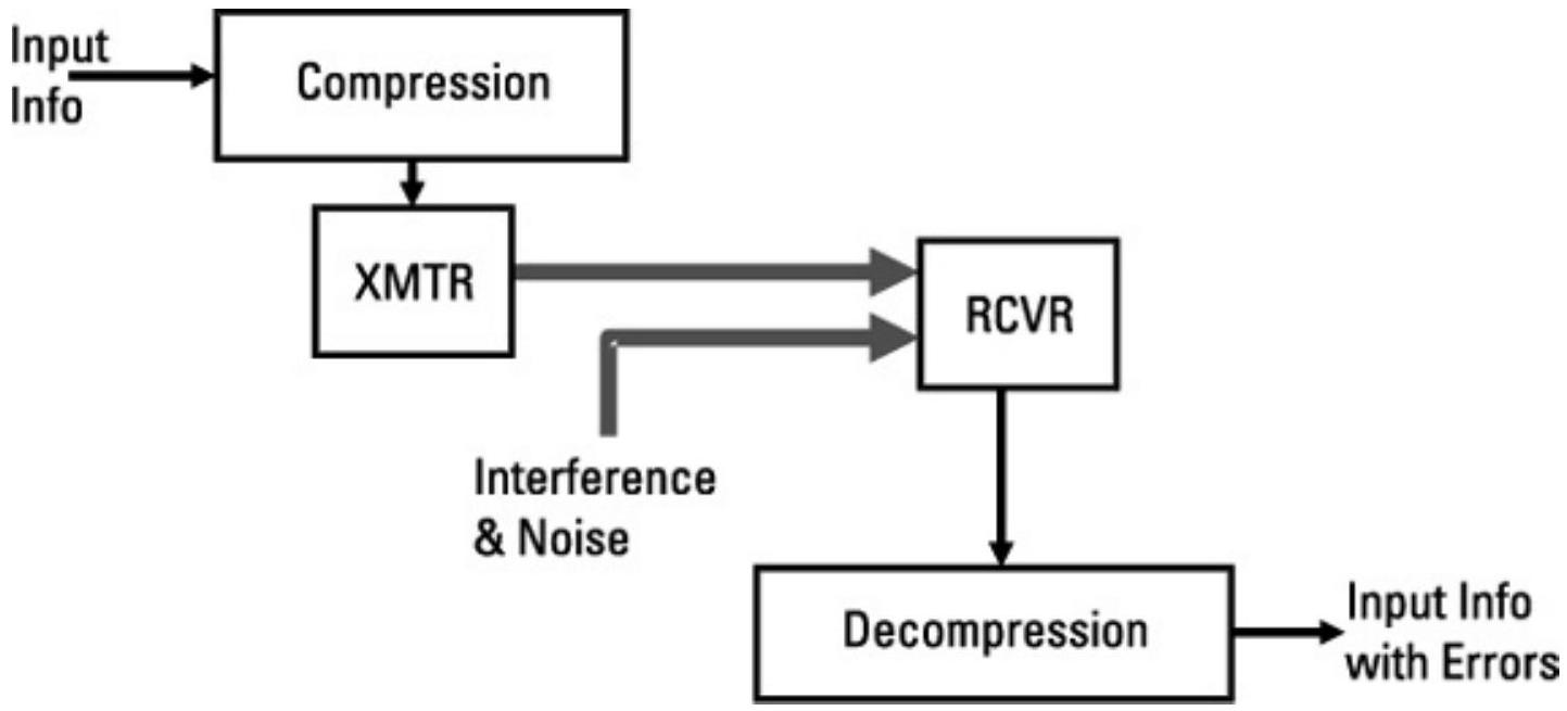 问题在于,任何编码都会对信息保真度产生影响。理想情况下,通信者使用无损编码,在编码与解码过程中完整保留信息。然而,当将编码信息从发送端传输到接收端时,传输过程的影响必须考虑。首先考虑数字通信介质。随着距离增加或干扰(无论是有意还是无意)的存在,在接收机判决比特为1还是0的过程中会产生比特错误。