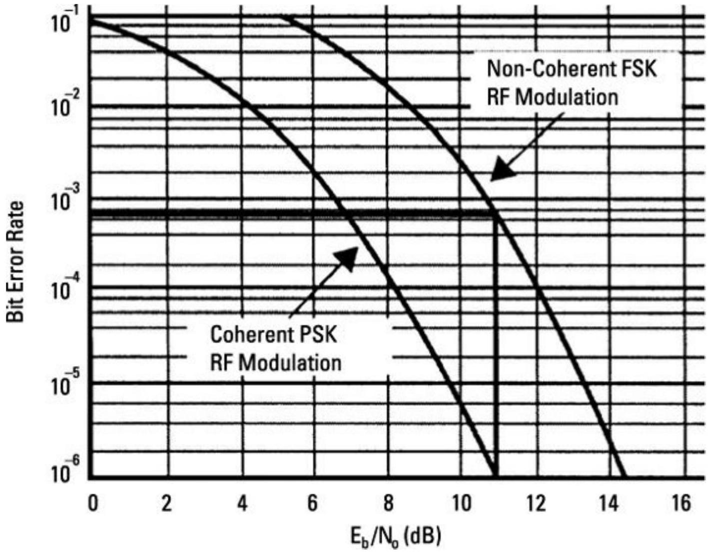 接收机灵敏度与接收机带宽成反比。如第5章将详细讨论的那样,接收数字信号所需的典型带宽约为比特率的0.88倍。因此,在相同数据吞吐率下,比特率翻倍会导致灵敏度下降3 dB。参考图2.1,这通常会使比特错误率增加三个数量级。这印证了数字通信领域的说法:除非对比特错误的容忍度极低或存在严重干扰,否则纠错措施可能弊大于利。