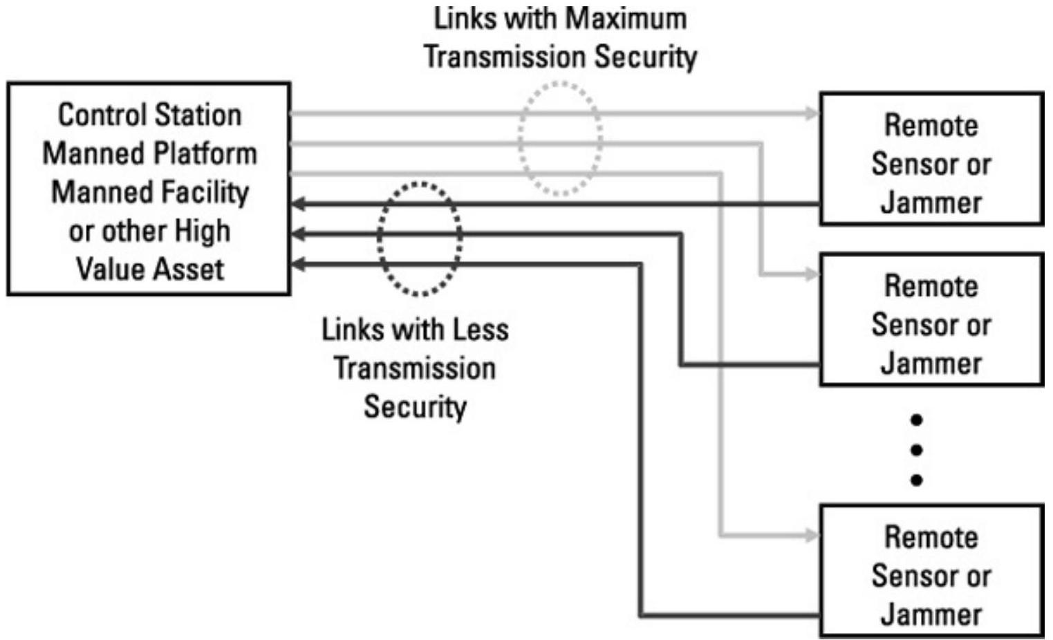 传输安全要求敌人无法探测或定位发射机。这与信息安全有很大不同,因为即使你使用了足够的传输安全措施来应对预期战术环境,敌人仍可能在某些情况下读取你的信息。传输安全措施包括限制辐射能量、几何性地缩小传输路径以及扩频。本章稍后会讨论这些问题及其对信息流效果的影响。