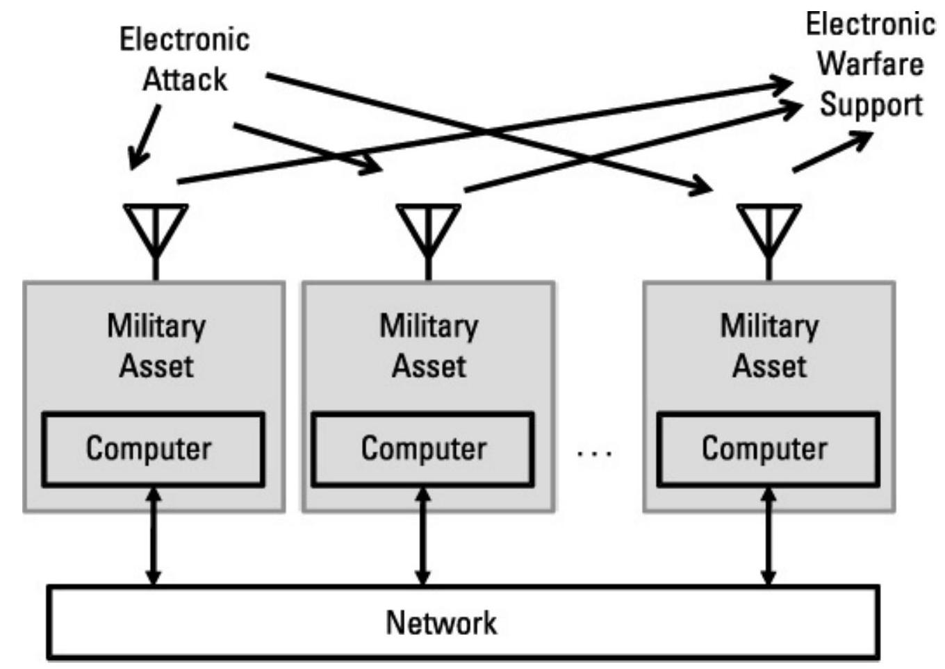 同样,这些干扰机必须是网络的一部分。而该网络自然会成为敌方的重要打击目标。如果敌方能够从我们的网络中收集信息,他们就能推断出我们大量的战术意图;如果他们能摧毁我们的网络,他们就能削弱甚至彻底消除我们的作战能力。