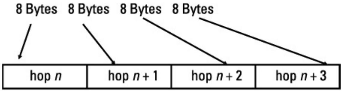 考虑该码在跳频信号中的使用。由于其最多可纠正8个错误字节,因此数据需交织,使得单次跳频传输的31字节中不会超过8字节来自同一个码块。图2.31展示了简化的交织方案;实际上,现代通信系统中字节位置是伪随机的。除非RFSNR足够低,导致多个数据块(例如跳频期间)的错误叠加,否则其比特错误率可有效降低至零。