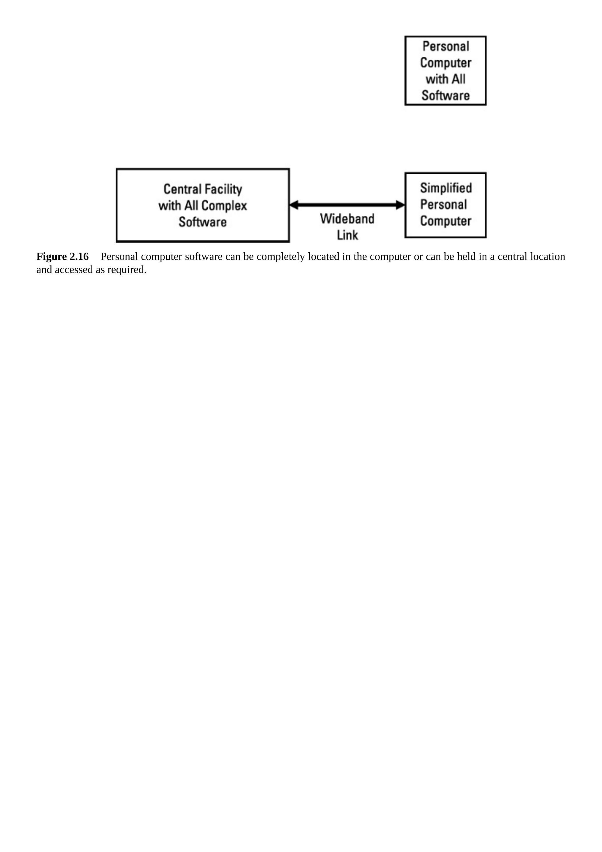 图2.34 云计算将大部分软件转移到由数据链路访问的大规模中央计算设施。