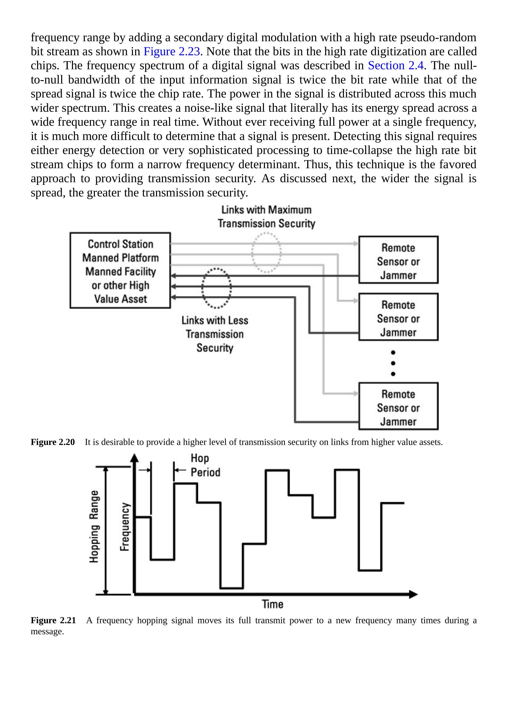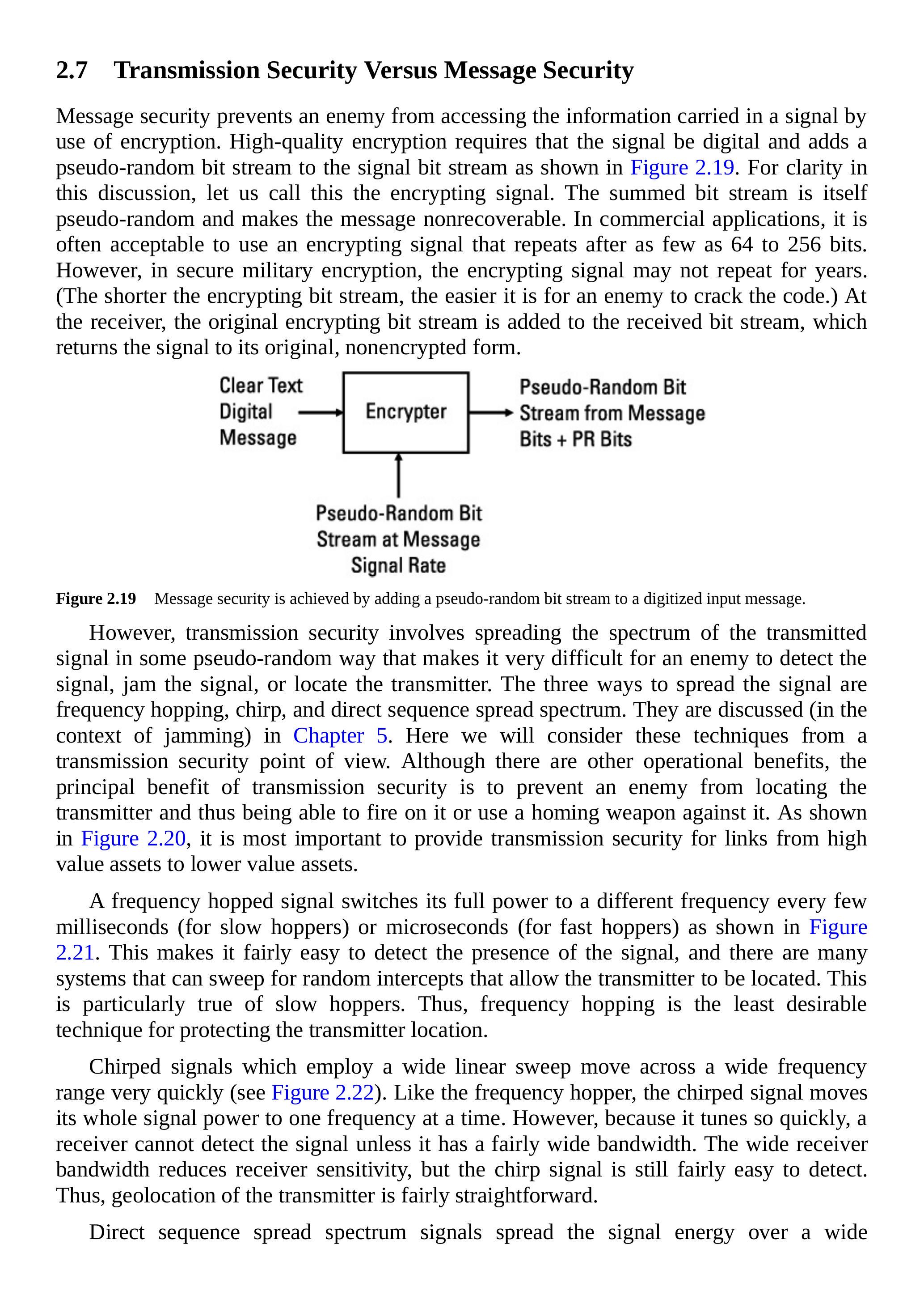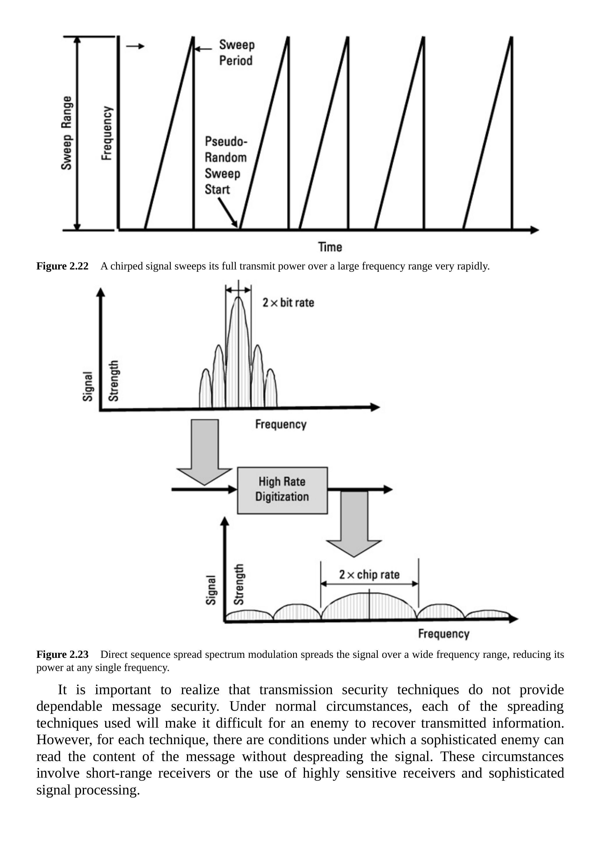 图2.36 扩频通信提供传输安全,而加密提供信息安全。