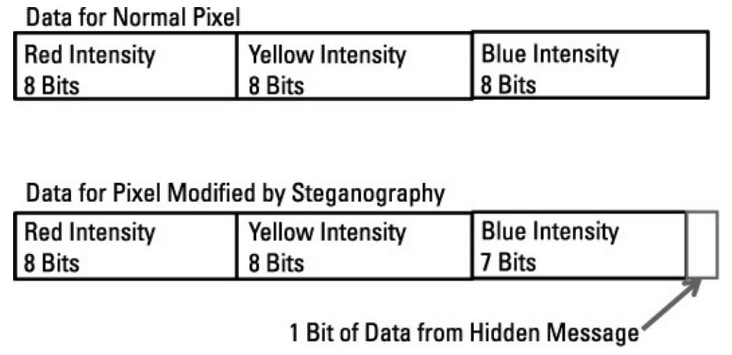 首先,它使我们能够在敌人不知情的情况下,将重要信息从点\(A\)传送到点\(B\)。另一种方式是将恶意软件嵌入看似无害的消息或图像中以发动网络攻击。若隐写术未被检测到,目标敌人甚至不会知道正在遭受网络攻击。
