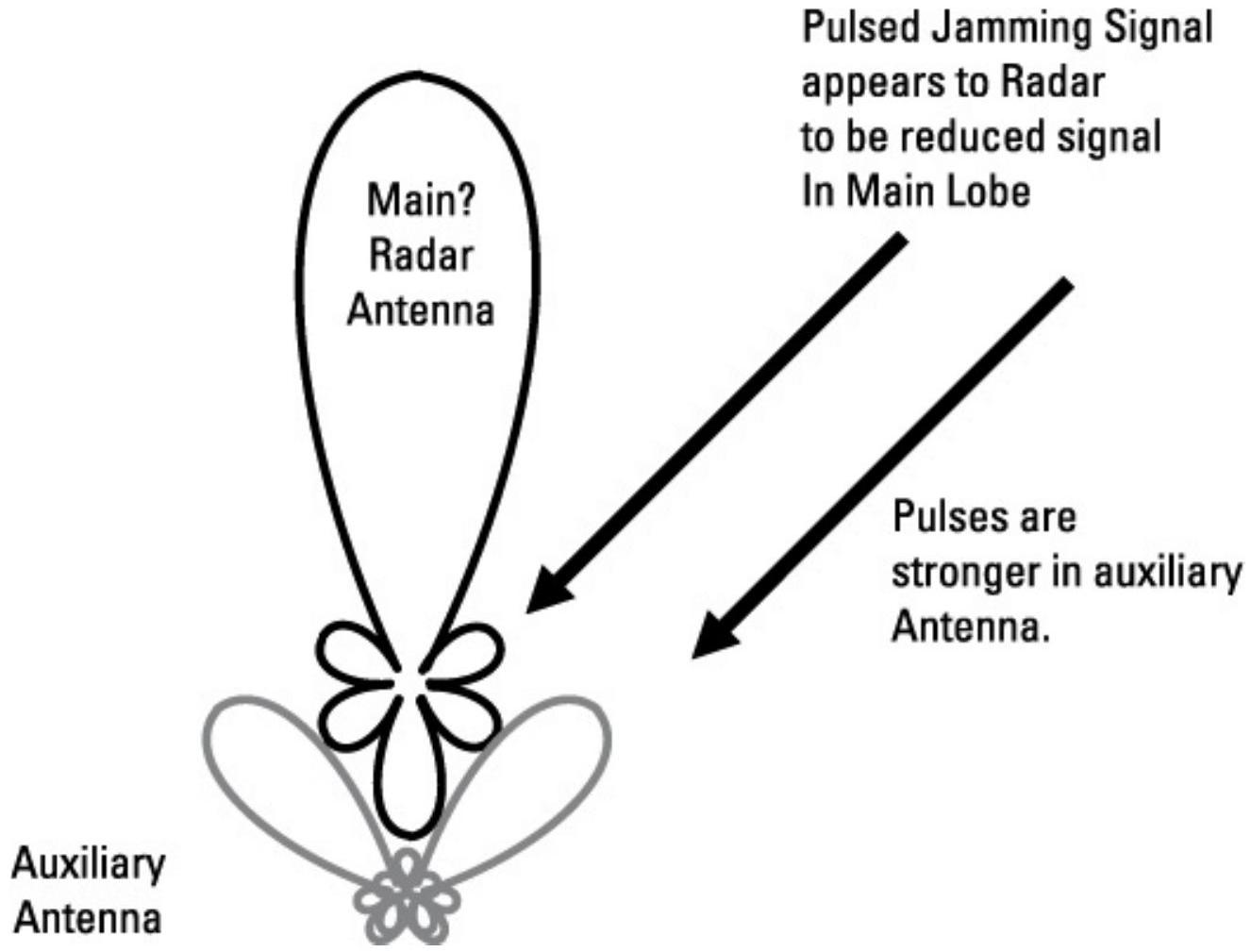 该技术给雷达带来的问题是:在其旁瓣中存在任何脉冲的时间段内,它无法接收自己的回波信号。因此,干扰机可以利用覆盖脉冲来使雷达(或数据链路或IFF)失效,即在雷达需要接收回波脉冲时将其消隐。由于旁瓣干扰机(例如远程干扰机)不在目标位置,它无法在微秒精度上知道敌方脉冲的时序,因此无法将脉冲直接叠加在敌方回波脉冲上。这要求旁瓣覆盖脉冲足够长,以涵盖这种时间不确定性。