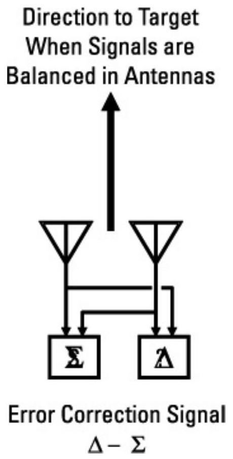 图4.9 单脉冲雷达具有多个天线馈源,并通过两个接收信号的差值与和的归一化来生成天线指向校正。