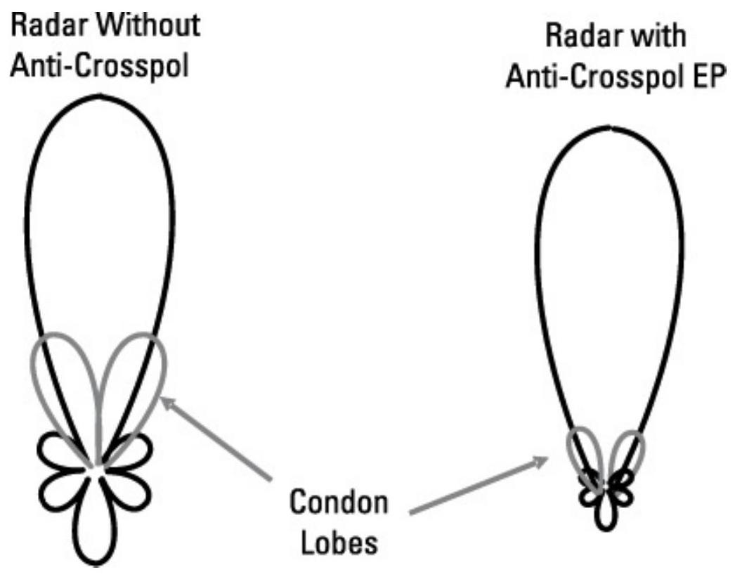 图4.12 具备抗交叉极化EP的雷达,其Condon瓣大幅减弱。